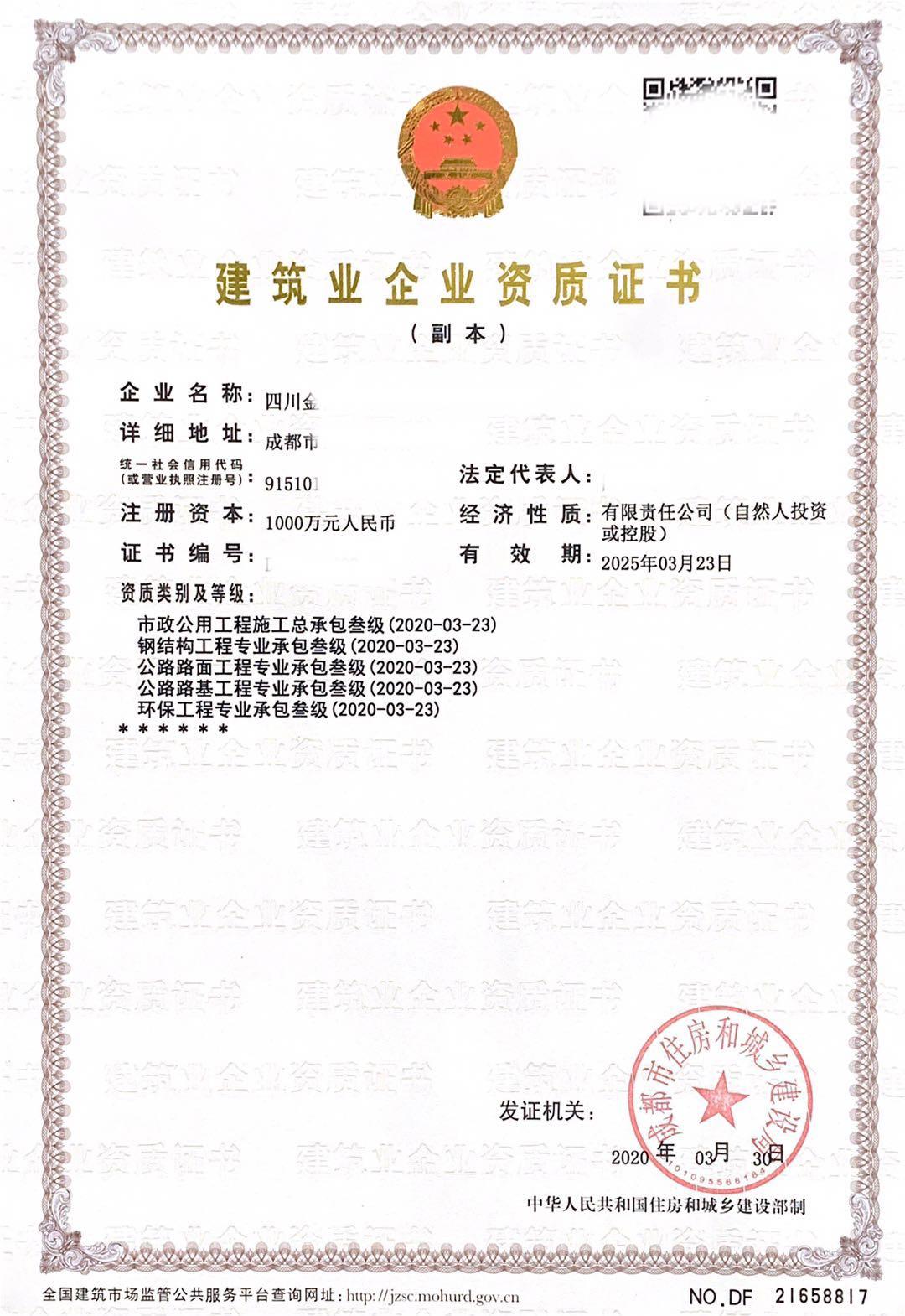 出售:施工总承包-市政公用工程施工总承包资质三级 我要举报