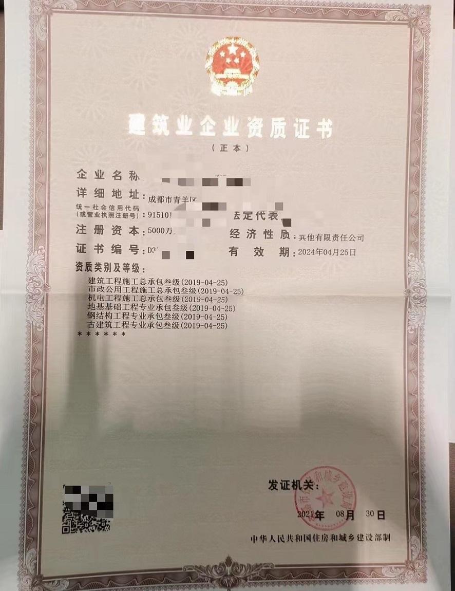 出售:施工总承包-机电工程施工总承包资质三级 我要举报